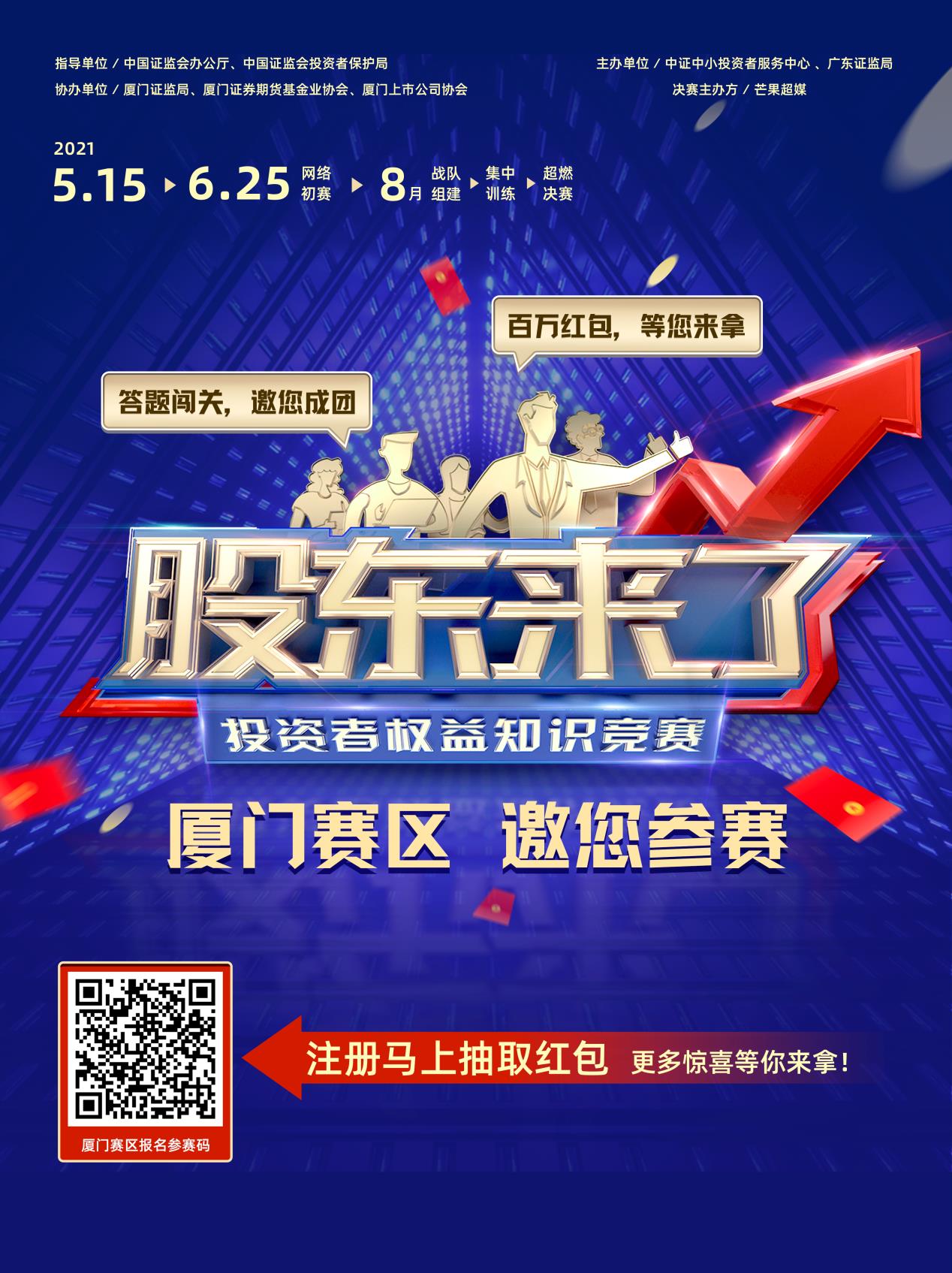 2021年是“十四五”規(guī)劃開局之年,為進一步落實證監(jiān)會黨委關(guān)于資本市場人民性要求和保護投資者合法權(quán)益的職責,在會辦公廳、投保局指導(dǎo)下,投服中心將聯(lián)合廣東、四川、湖北、內(nèi)蒙古、海南、西藏六證監(jiān)局共同舉辦《股東來了》2021投資者權(quán)益知識競賽,面向廣大中小投資者普及權(quán)益知識,示范引領(lǐng)全面知權(quán)、積極行權(quán)、依法維權(quán)。
